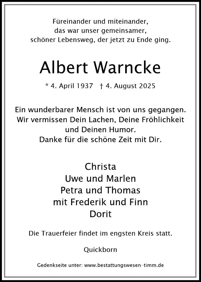 Albert Warnckegestorben am 4. August 2025