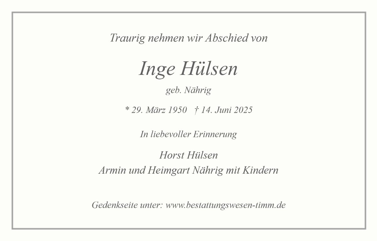 mit dieser Gedenkseite haben wir einen Platz für Ihre gemeinsamen Erinnerungen geschaffen. Mit dem Anzünden einer Kerze oder dem Mitteilen von Gedanken in ganz persönlichen Worten können Verwandte, Freunde oder Bekannte an Ihre liebe Verstorbene denken.