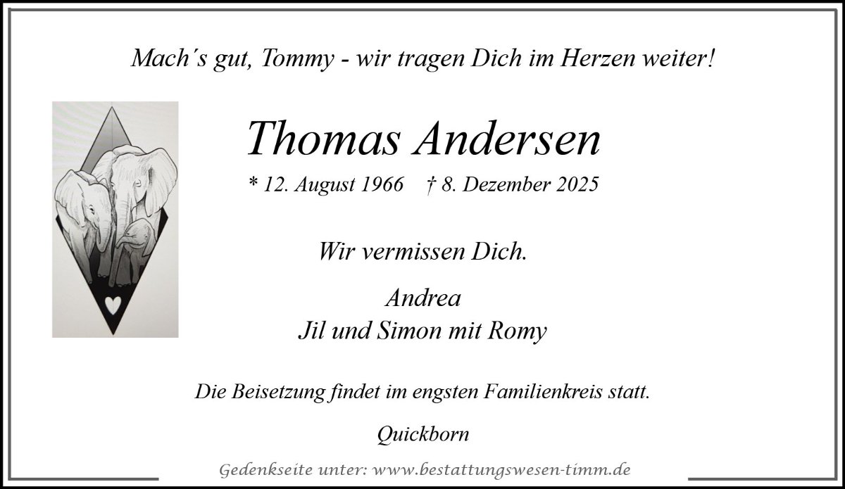Lieber Thomas ,schön für uns, dass wir Dich durch Andrea kennenlernen durften 🥀sehr sehr traurig für uns, dass Du so leiden musstest 🥀, — bin dankbar für die Liebe 💕von Andrea und Eurer kleinen lieben Familie , die Dich immer gestützt haben , alles Liebe — Brigitta und Achim 🥀✨