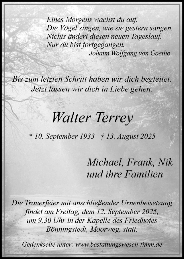 mit dieser Gedenkseite haben wir einen Platz für Ihre gemeinsamen Erinnerungen geschaffen. Mit dem Anzünden einer Kerze oder dem Mitteilen von Gedanken in ganz persönlichen Worten können Verwandte, Freunde oder Bekannte an Ihren lieben Verstorbenen denken.